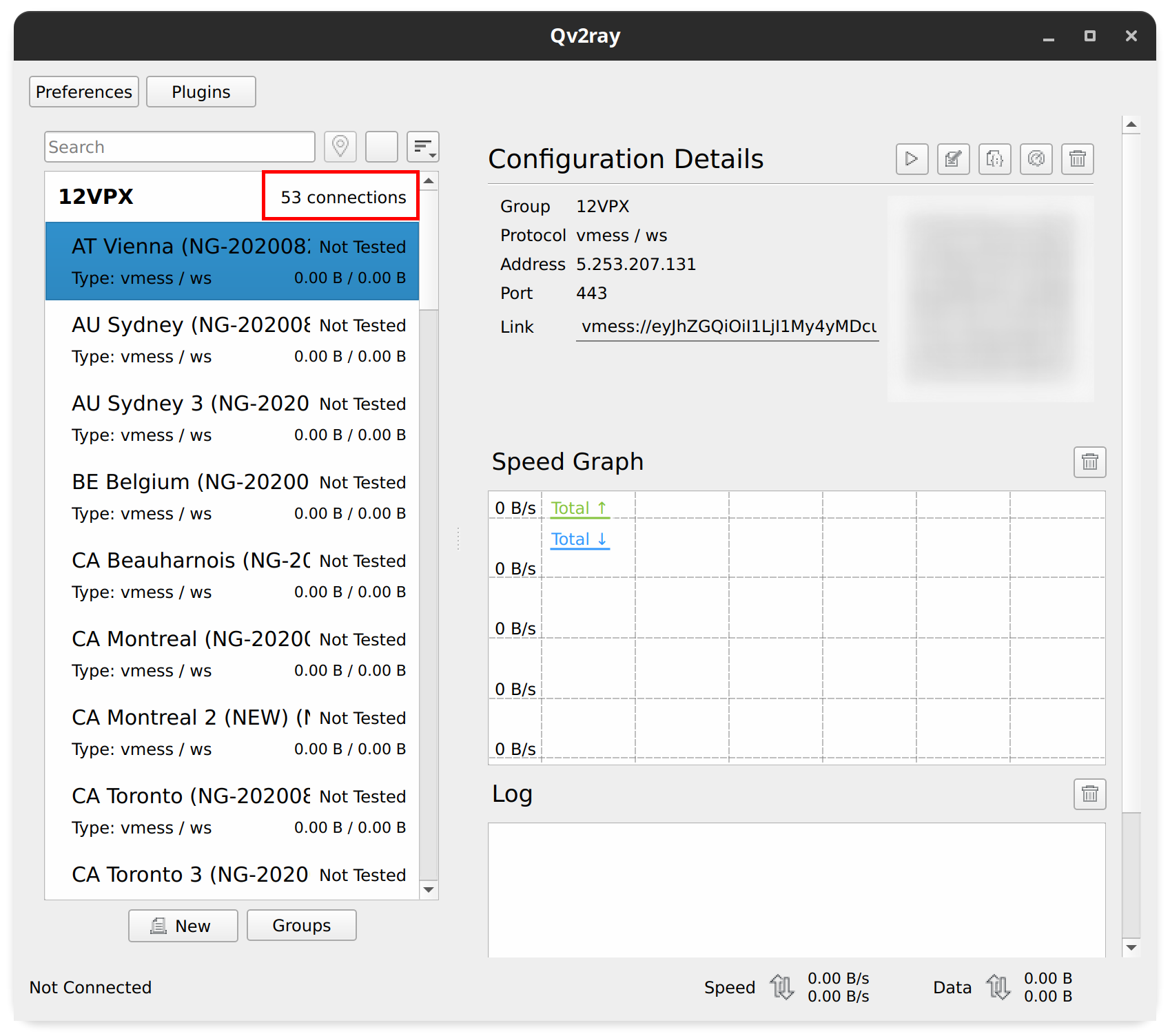 返回到主要的Qv2ray界面,现在您可以双击12VPX组以查看所有服务器。